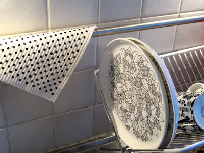 Här hemma finns det fortfarande ingen diskmaskin, och det är oftast jag som diskar. Jag älskar det inte, men jag ogillar det inte lika mycket som J gör. Och så är jag nog lite snabbare på det. Han gör en massa andra saker som jag inte gör. Bär tunga saker och sånt. Här får kanske en och annan feminist något att bita i; men det verkar än så länge funka finfint hos oss i alla fall.