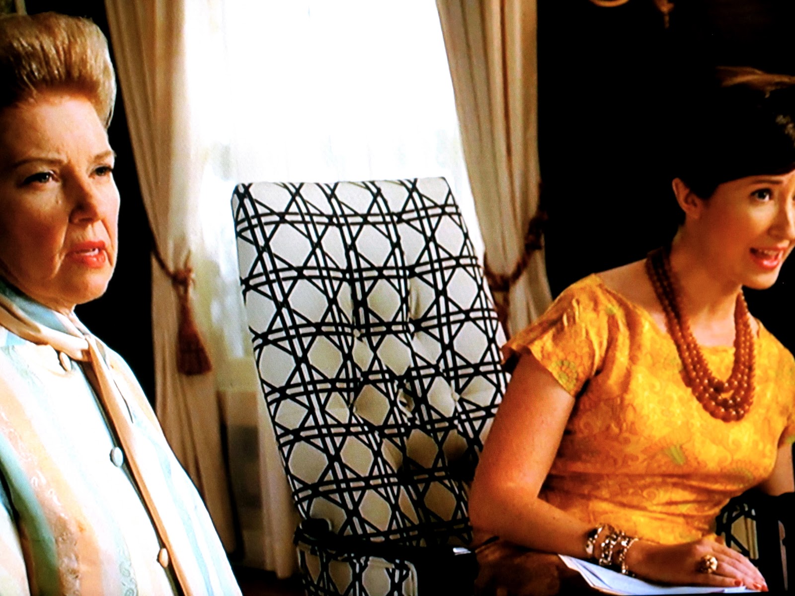 I ett avsnitt vi såg nyligen har Don och Betty Draper precis köpt nya möbler till sitt vardagsrum, och kolla in den svartvita fåtöljen (som de förresten har två stycken av). Vacker!